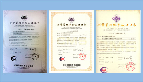 華菱湘鋼、華菱漣鋼、華菱衡鋼測量管理體系認證證書